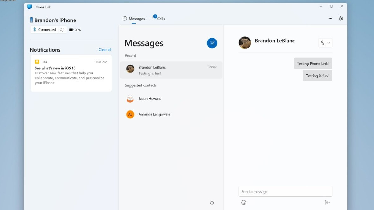 Phone Link, en basit anlatımı ile iPhone’ların bir Windows bilgisayara bağlamasına imkan tanıyor. Bu uygulama ile kullanıcılar, Windows 11’de iMessage yoluyla mesaj gönderip alacak, arama yapacak ve bilgisayarlarında telefonlarına gelen bildirimleri görecekler.